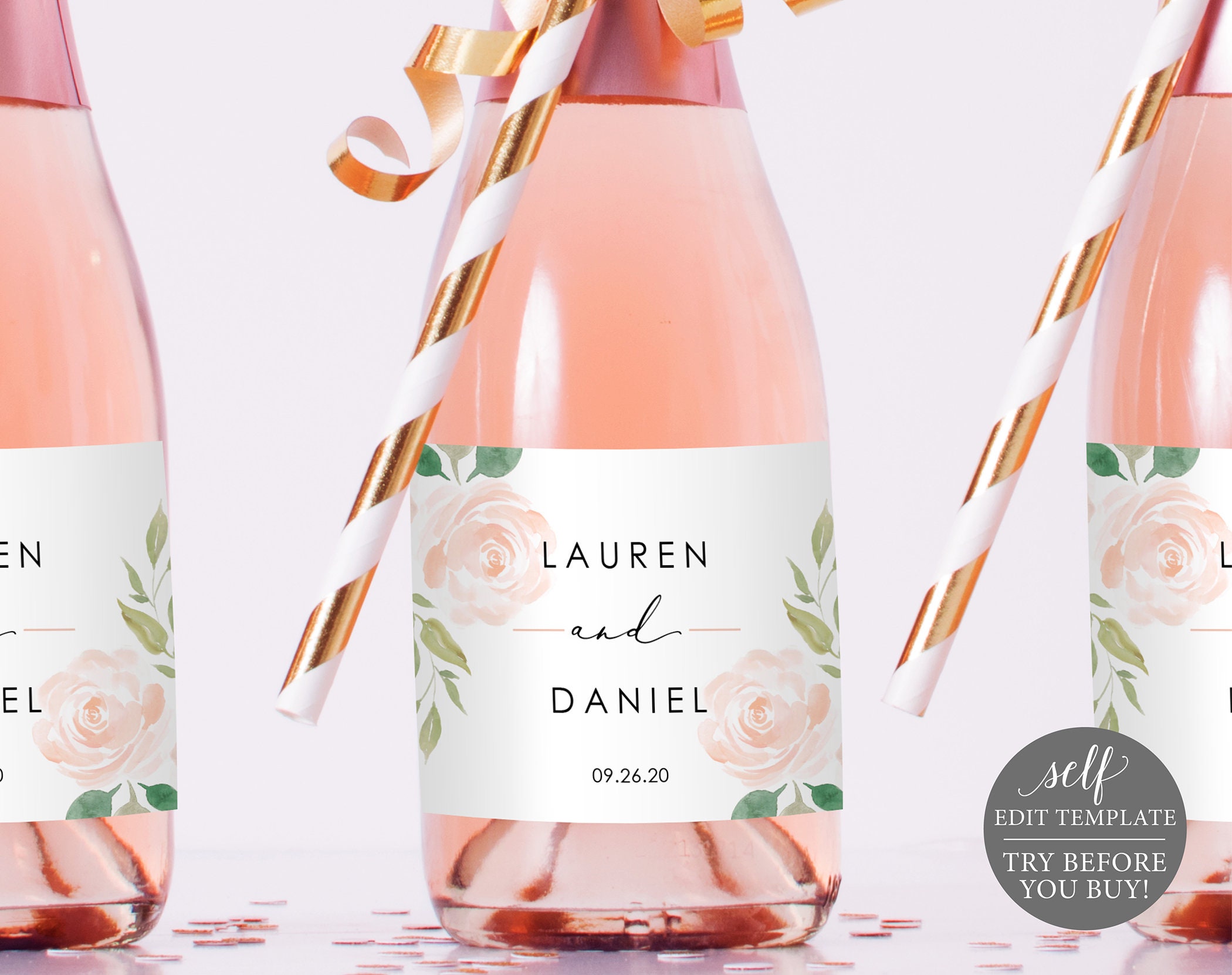 Wedding Favors: Mini Wine Bottles With Personalized Labels The PDF file linked below will allow you to customize the labels with you and your partner's name and wedding date. You can choose to omit this section simply by leaving it blank. 2" x 5" Labels. OL8250. Wedding Wine Bottle. Printable Template.