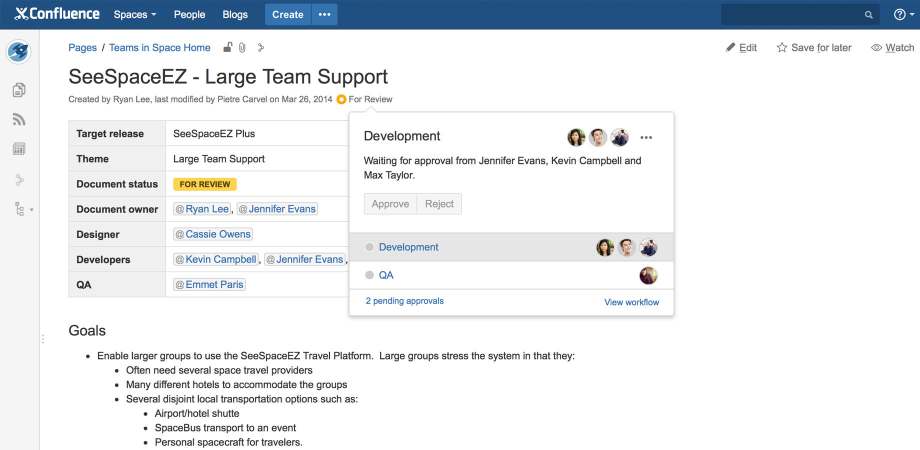 Comala Document Management | Atlassian Marketplace Powerful document management and process control comes to Confluence Cloud with Comala Document Management's reviews and approvals. Customize approval workflows to create, review, approve, publish, and share your content. Use Document Management to meet standards like ISO 9001 and ISO 13485. Assign page reviewers