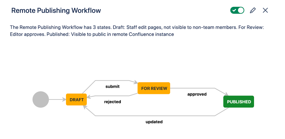 Comala workflows visibility - Atlassian Community We use Comala Workflows to do exactly what you are describing. When using the workflows, Confluence maintains 2 versions - the published one and one with any edits. When ready, the version with edits gets approved, it replaces the old one (now you go back to just one version of a page)