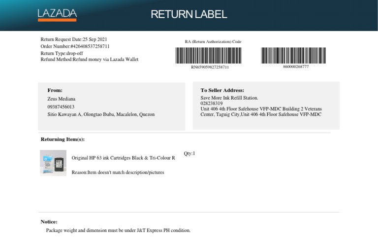 Hp return label. HP Planet Partners - Supplies recycling program | HP® United Kingdom Yes, HP uses recycled materials extensively in packaging, including recycled content paperboard, corrugated cardboard and recycled plastic. HP has produced more than 3.9 billion Original HP ink and toner cartridges that contain recycled plastic. Today more than 80% of Original HP ink cartridges and 100% of Original HP toner cartridges are now ... HP - Return and Recycle HP Products | HP® Customer Support HP also offers a variety of product end-of-life return programs for HP hardware in a number of geographic areas. Returned products are reused, recycled or disposed of responsibly. Each month, HP reuses or recycles more than 3.5 million pounds (7.7 million kilograms) of material in our European product-recovery centers. HP.com returns & refunds | HP® Official Store HP reserves the right to deny any returns in circumstances involving repeated returns or other abuse. To return or exchange an item, you must first obtain a Return Merchandise Authorization (RMA) from HP.com Store, either by initiating online or by Emailing us. The return label we email to you will enable you to return the item to us. DHL Online Returns Please enter your complete event reference below. Returns Reference *.