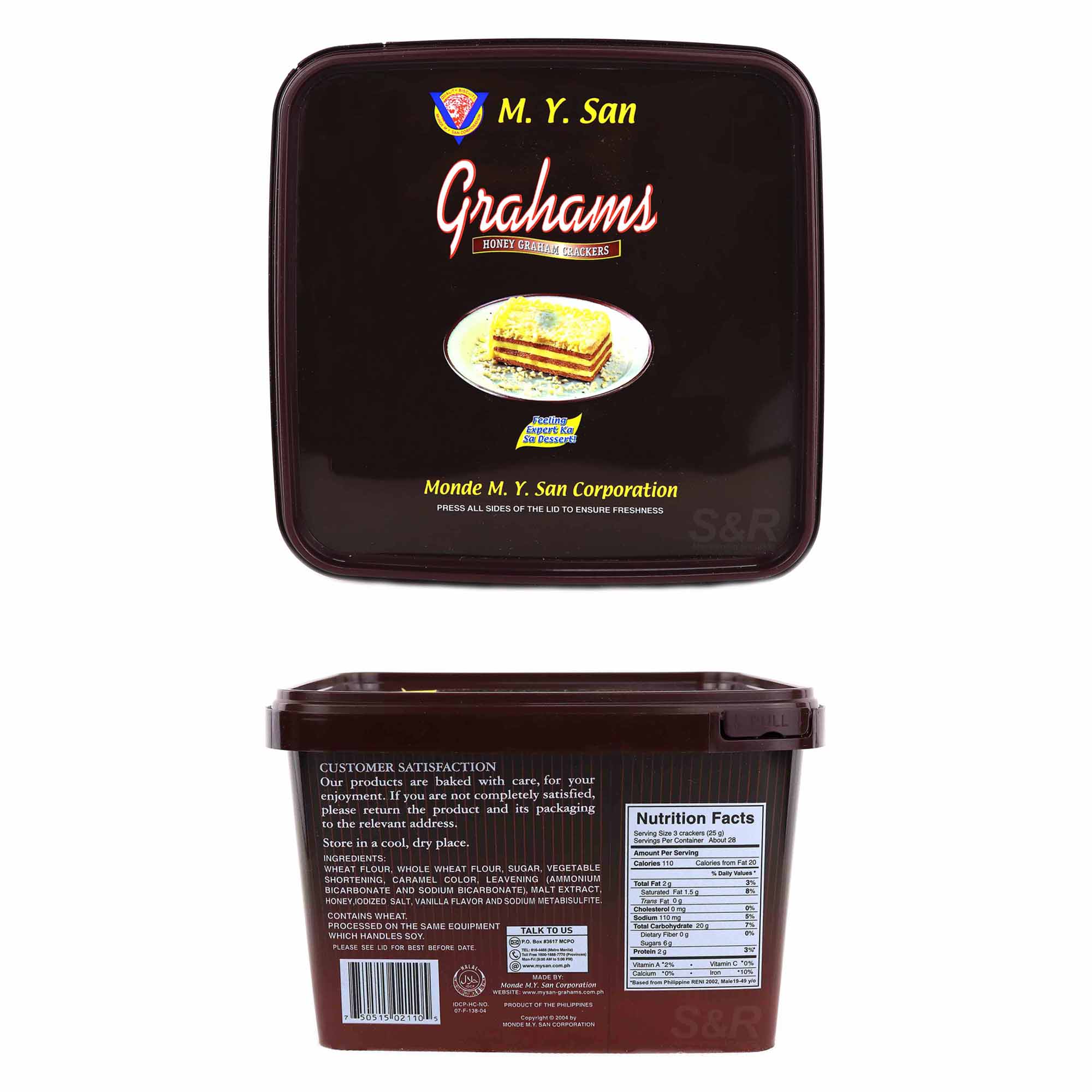 M.Y. San Graham Cracker 700g - filipino.is Art no. 0023 M.Y San graham honey crackers Ingredients: WHEAT flour, whole WHEAT flour, sugar, vegetable shortening (coconut oil and palm oil), color (E150 (SULFITE)), raising agents (E503, E500, and E341), MALT extract, honey, iodized salt, artificial vanilla flavor, and flour treatment agent (E223). Allergen information: Processed in the same equipment which handles SOY. Nutrition […]
