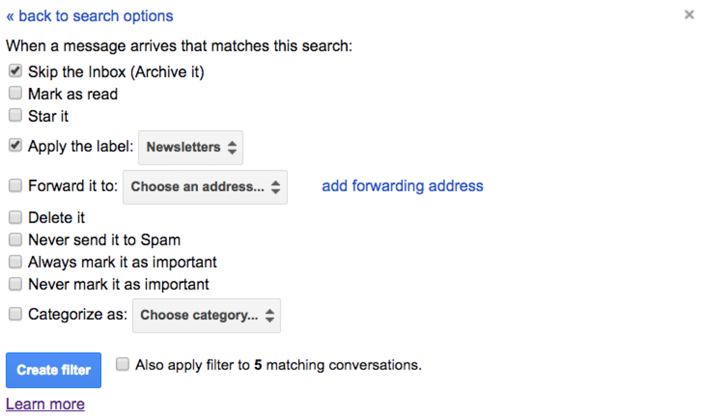 GMail hack: How to identify messages without an attachment For messages with an attachment, the filter should apply a "backup" label, and for those without an attachment, it should apply a "to do" label. It turns out that GMail search cannot find just messages that do not have an attachment. Is there a way to search in Gmail for emails that contain or ... - Quora To search for recently archived emails in Gmail, open Gmail and in the search box, type "in:archive" (without the quotes) and press enter. It will show only messages that have been archived (not including messages in the inbox like All Mail). How to Sort Your Gmail Inbox by Sender, Subject, and Label Type the person's name or email address into the Gmail search box first. Then just right-click on any of the messages it finds and select Find emails from once again. 2. Sort Emails From Any ... How to master Gmail's advanced search and labelling - Google Cloud Blog Find your label's name on the left hand side of your Gmail inbox, and click the three dots. Select Label color. Select the color you'd like for the label; I picked red to make it super visible....