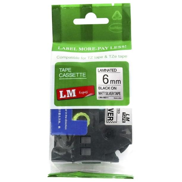 LM Tapes replacement for Brother PT-D200 Label Maker 6mm Black on Matte Silver Compatible TZe P-touch Tape (1/4" 0.23 Laminated) for use in Ptouch ...