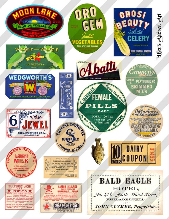 Digital Collage Sheet Vintage Ephemera Label Images sheet No. - Etsy Ireland