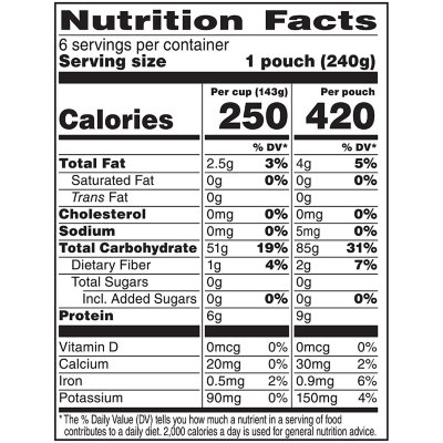 Uncle ben's rice nutrition label. EWG's Food Scores | Uncle Ben's Ready Rice Check out the food score for Uncle Ben's Ready Rice from EWG's Food Scores! EWG's Food Scores rates more than 80,000 foods in a simple, searchable online format to empower you to shop smarter and eat healthier. ... Label for Uncle Ben's Ready Rice captured by LabelINSIGHT on Mar 31, ... The nutrition factors used for scoring Uncle Ben's Ready ... Calories in Uncle Ben's Long Grain & Wild Rice, Original Recipe ... Calorie Breakdown. Where do the calories in Uncle Ben's Long Grain & Wild Rice, Original Recipe, prepared as directed come from? 11.7% 86.1% 2.2% Protein Total Carbohydrate Total Fat 200 cal. * The % Daily Value (DV) tells you how much a nutrient in a serving of food contributes to a daily diet. 2,000 calories a day is used for general ... Original Long Grain White Rice, Cooked Calories, Carbs & Nutrition ... Find calories, carbs, and nutritional contents for Original Long Grain White Rice, Cooked and over 2,000,000 other foods at MyFitnessPal ... Exercise. Apps. Community. Blog. Premium Uncle Ben's. Original Long Grain White Rice, Cooked. Serving Size: 1 cup cooked. 170. Cal. 90%. 35g. Carbs. 0%--Fat. 10%. 4g. Protein. Track macros, calories, and ... Uncle Ben's Ready Rice Nutrition Facts - GroceryNutrition.org Uncle Ben's Ready Rice Nutrition Facts. Serving Size 152g: Calories: 240 Calories From Fat 32 Amount Per Serving % Daily Value* Total Fat: 3.5g 5% ... Uncle Ben's Ready Rice contains the following ingredients: Water, short grain brown rice, red rice, black rice, canola and/or sunflower oil, salt, soy lecithin.